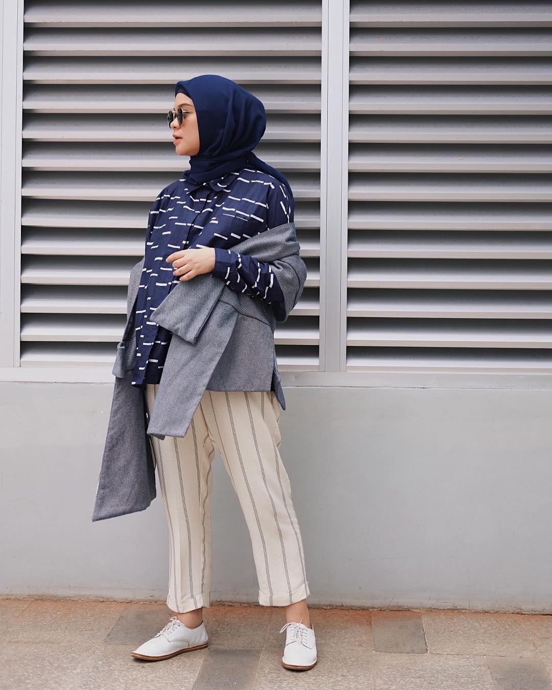 Mengaplikasikan beberapa oversized item memang pas buat kamu para hijaber yah.