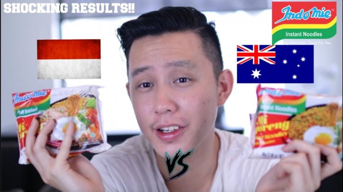 Channel YouTube Pepin Miles membahas tentang perbedaan Indomie Indonesia versus Australia melalui unggahan videonya 14 Desember 2017 lalu.