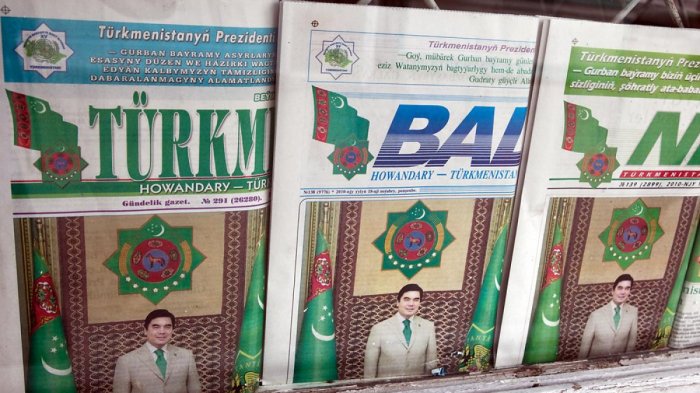 Karena gambar Presdien Gurbanguly Berdymukhammedov mendominasi sebagian besar halaman surat kabar nasional, sehingga sulit untuk tidak mengotorinya.