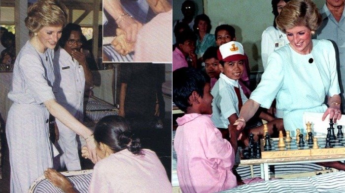 Putri Diana kemudian tanpa ragu duduk di tempat tidur penderita kusta di sana.