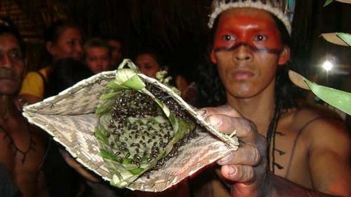 Tradisi ini dilakukan oleh suku Satere Mawe asli hutan hujan Amazon untuk mengajari mereka tentang penderitaan dan persiapan menghadapi kerasnya hidup dan betapa bahayanya hutan.