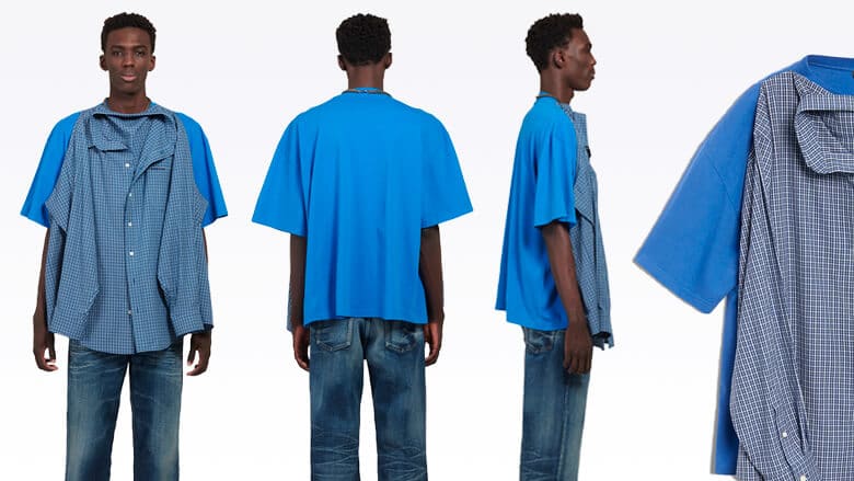 Balenciaga telah mengeluarkan seri fashion pria berupa kaus oblong yaang 'ditempeli' kemeja di bagian depannya.