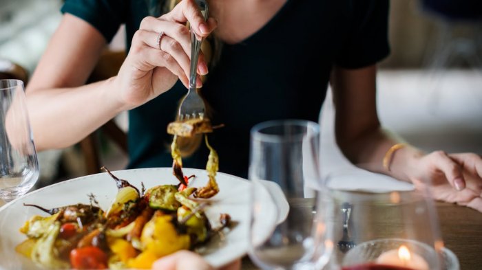 Meski sudah menahan lapar seharian, namun saat berbuka puasa jangan terburu-buru melahap banyak makanan yang sudah tersedia di meja.