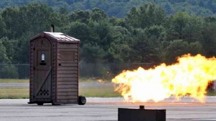 Toilet ini seperti jet yang di belakangnya keluar api.