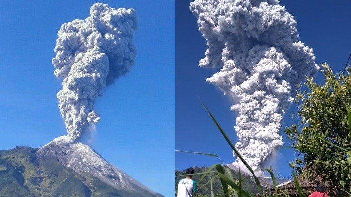 Gunung yang berada di Jawa Tengah dan DI Yogyakarta itu juga mengeluarkan asap setinggi 6000 meter ke arah barat daya.