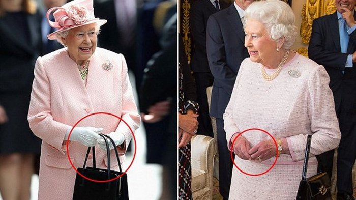 Ketika jamuan makan, ratu yang menenteng dompet memberikan isyarat pada pelayan kerajaan bahwa ia akan segera pergi.