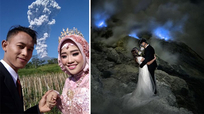 TRIBUNTRAVEL.COM - Beredar foto prewedding berlatarkan Gunung Merapi yang sedang meletus di media sosial.