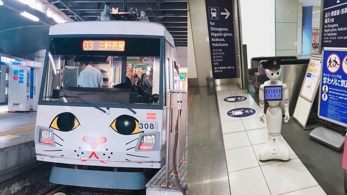 Tokyu Corp mengecat trem ini dengan bentuk manekineko.