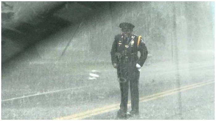 Ternyata, sang petugas heroik ini sedang dalam perjalanan pulang dari sebuah upacara ketika dia menyadari situasi binatang itu.