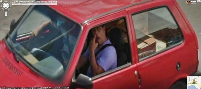 Gambar ini menunjukkan seorang pria ngupil di mobil.