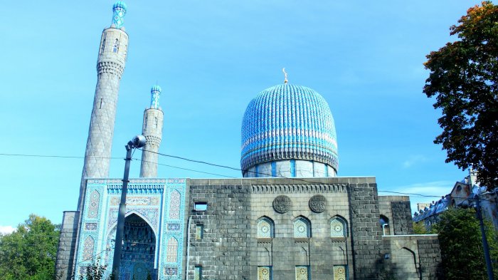 Nah, di antara puluhan tempat wisata di sana, di dekat bantaran Sungai Neva terdapat sebuah masjid kubah berwarna biru.