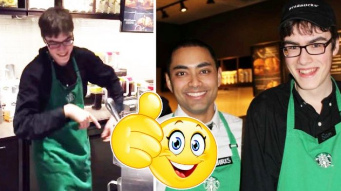 Namun, berkat dukungan manajer Starbucks, Chris Ali, Sam sekarang berkembang sebagai barista di waralaba kopi populer.