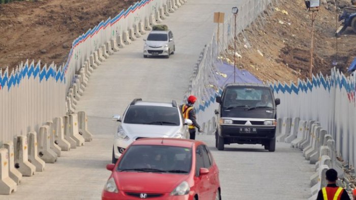 "Penyempitan sengaja dilakukan dari dua lajur menjadi satu supaya mobil bisa ancang-ancang naik pas tanjakan," kata Fatahillah.