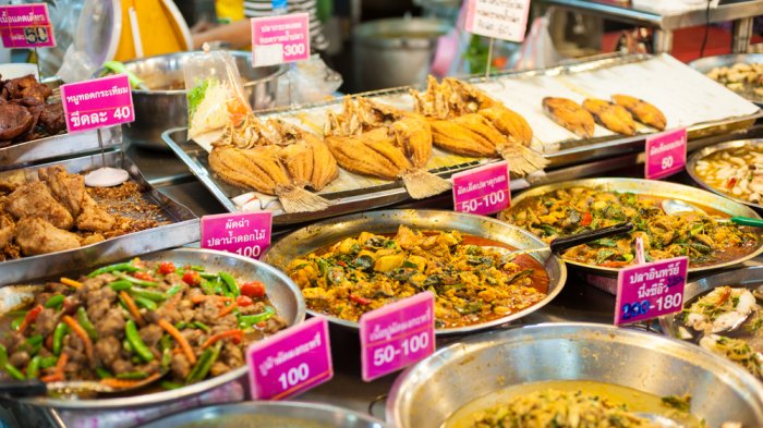 Mulai dari daging babi goreng di pasar Wang Lang, hingga tom yum kway teow yang dijual di pasar terapung Damnoen Saduak Floating Market.