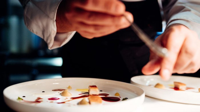 Ada set menu yang terdiri dari 10-12 hidangan dan pilihan anggur untuk padanan makan.