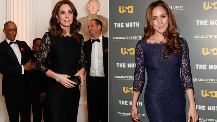 Meghan mengenakan gaun ini pada Februari 2012 silam, sedangkan Kate pada November 2014.
