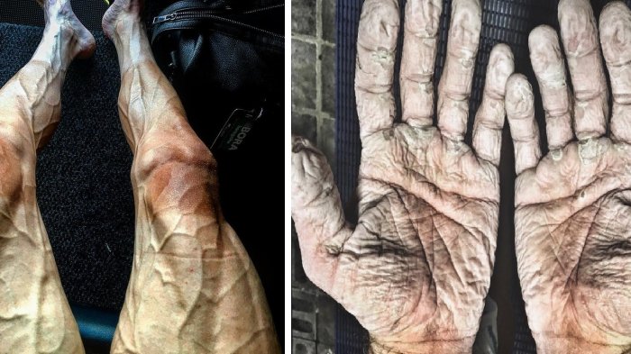 Ini adalah tangannya setelah menghabiskan waktu lama dalam sarung tangan dayung.