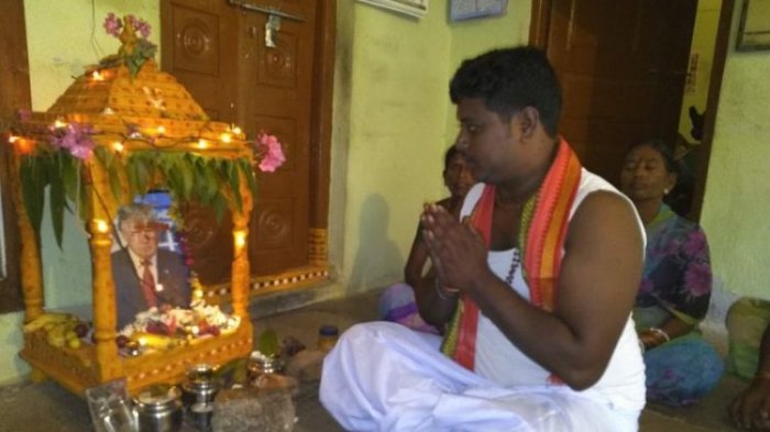 Bukan cuma itu saja, Krishna juga membuat persembahan berupa vermilion, kunyit, dan bunga kepada foto yang ia bawa ke manapun ia pergi.