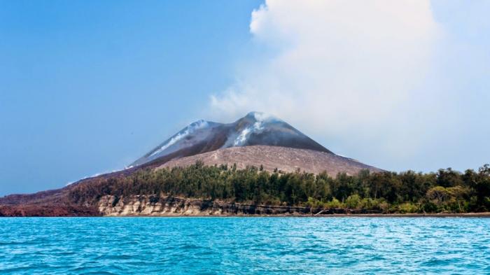 Gunung Anak Krakatau baru muncul dari permukaan laut tahun 1927.