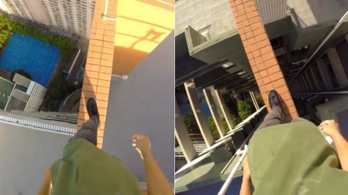 Bagaimana tidak, dalam video ditunjukkan bagaimana rasanya berjalan di pinggiran atap gedung dengan tinggi mencapai puluhan meter.