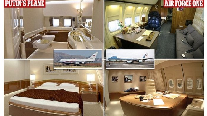 Dilansir dari laman Dailymail.co.uk (18/7/2018), interior mewah jet pribadi Vladmir Putin dilengkapi toilet emas, kasur berukuran besar hingga ruang khusus gym.