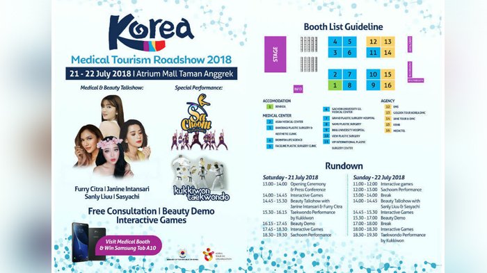 Belasan stan wisata kesehatan dan kecantikan hadir langsung dari Korea, mulai 10 rumah sakit terkemuka di Korea, yang menawarkan pelayanan kecantikan.