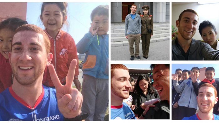 Drew bahkan menyempatkan diri untuk berfoto selfie di tengah ribuan orang yang tengah berlatih menari untuk liburan nasional memperingati kelahiran Kim Il Sung pada 15 April.
