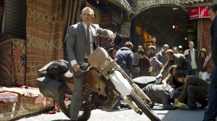 Pembuatan film Skyfall dimulai di Istanbul dengan James Bond melakukan adegan kejaran motor melalui Spice Market di distrik Eminonu, Istanbul, Turki.