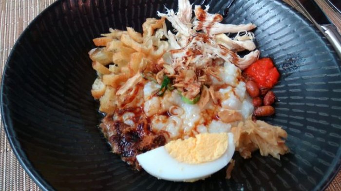 Selain bubur dan kaldu kuning, total ada 11 pilihan pelengkap untuk makan bubur.