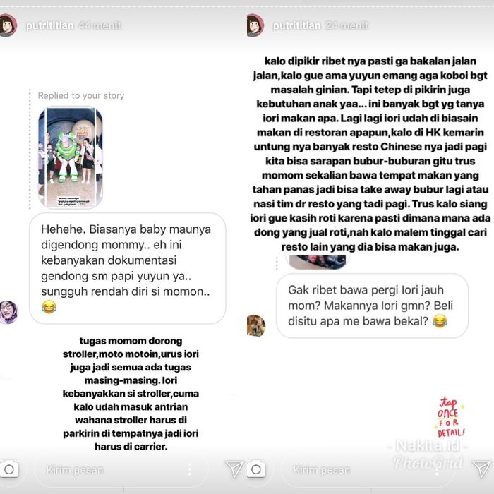 Nah, dalam istastory nya pula Tian membagikan kiat-kiatnya agar traveling tetap terasa aman dan nyaman meskipun bersama anak-anak.