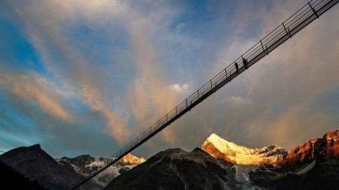 TRIBUNTRAVEL.COM - Jembatan gantung sepanjang hampir 500 meter, yang disebut sebagai jembatan gantung terpanjang bagi pejalan kaki, diresmikan di Kota Zermatt, Swiss.