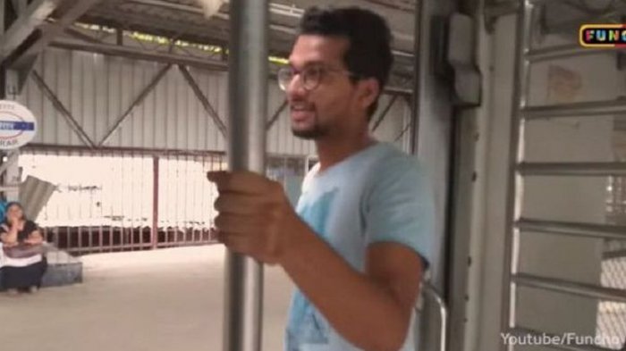 Video tersebut diunggah di YouTube oleh Funcho Entertainment, dan memperlihatkan pria berkacamata turun dari kereta.