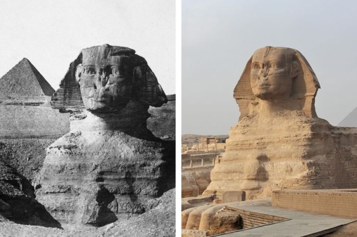 Namun selama bertahun-tahun, Sphinx terkubur di pasir Sahara, sehingga hanya kepalanya saja yang terlihat.