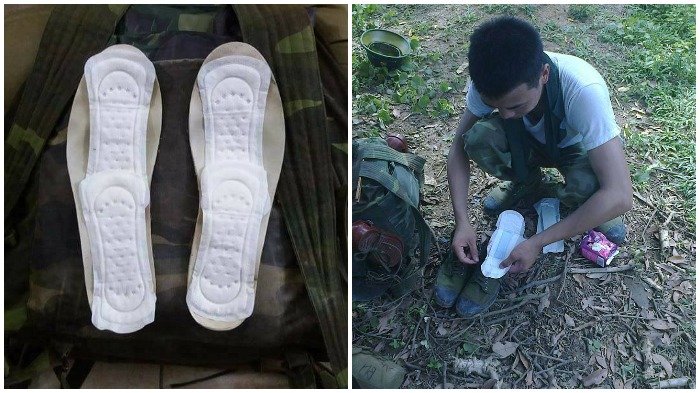 Foto-foto tentara Vietnam yang menggunakan cara cerdik menjadikan pembalut sebagai pengganjal alas sepatunya ini menjadi viral di media sosial.