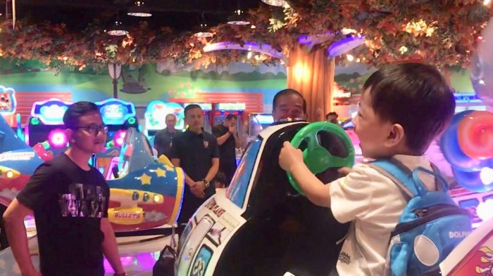 Presiden kemudian mengajak Jan Ethes bermain wahana komidi putar "Superplane".