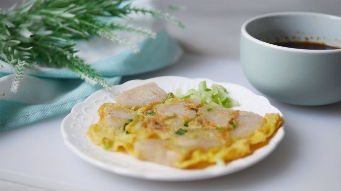 Uniknya, makanan ini dilengkapi dengan irisan bengkoang dan jamur serta ditaburi daun bawang, selederi, dan bawang goreng.