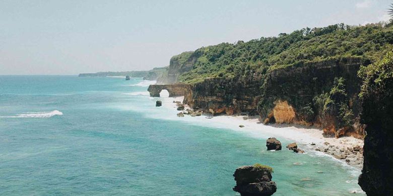 Bahkan, tidak harus repot turun ke bibir pantai, juga sudah dapat menikmati pemandangan yang indah dari atas tebingnya.