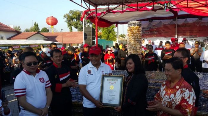 Piagam Rekor MURI diserahkan Ekeskutif Manager MURI Sri Widyawati kepada Bupati Karanganyar, Juliyatmono.