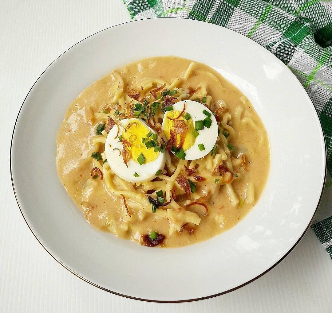 Sajian ini menjadi semakin nikmat karena disajikan dengan bihun dan kuah gurih yang terbuat dari kaldu udang.