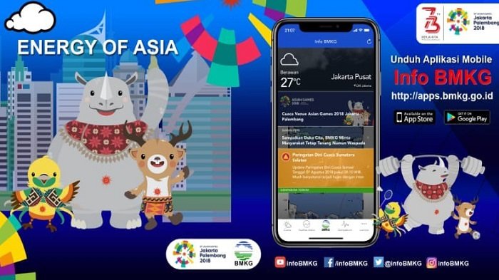 Dilansir oleh TribunTravel.com dari bmkg.go.id bahwa BMKG meluncurkan aplikasi cerdas berbasis teknologi guna memantau secara detail cuaca di setiap venue pertandingan Asian Games.