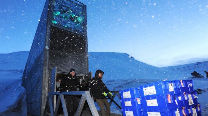 Svalbard Global Seed Vault, Norwegia menyimpan benih pangan dunia.