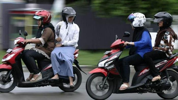 Yap, duduk miring saat naik motor adalah kebiasaan unik yang hanya dilakukan orang Indonesia, lo.