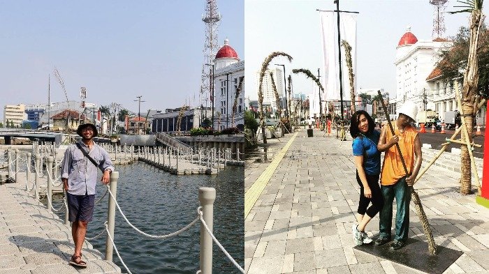 Meski belum diresmikan, suasana Kali Besar hasil revitalisasi mulai 2016 itu dan bangunan-bangunan tua di sekitarnya, mampu menarik perhatian pengunjung asing.