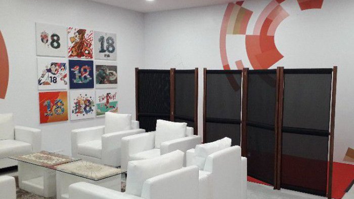 Begitu memasuki ruangan, ada sejumlah lukisan bertema olahraga di tiga sudut ruangan.
