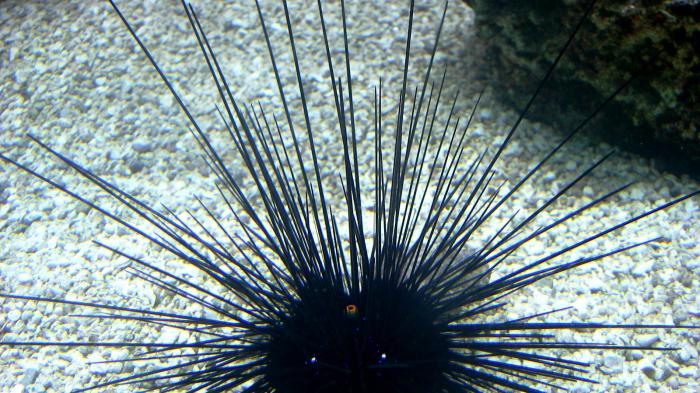 Ini berasal dari bulu babi berwarna ungu gelap dengan duri panjang yang runcing.