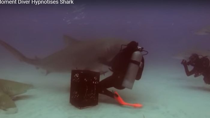 Karena setelah itu, bukannya melawan, hiu tersebut malah terpaku pada tangan si penyelam.