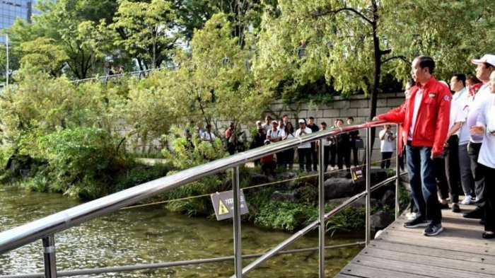 TRIBUNNEWS.COM - Presiden RI Joko Widodo mengunjungi Sungai Cheonggyecheon di Korea Selatan, Selasa (11/9/2018).