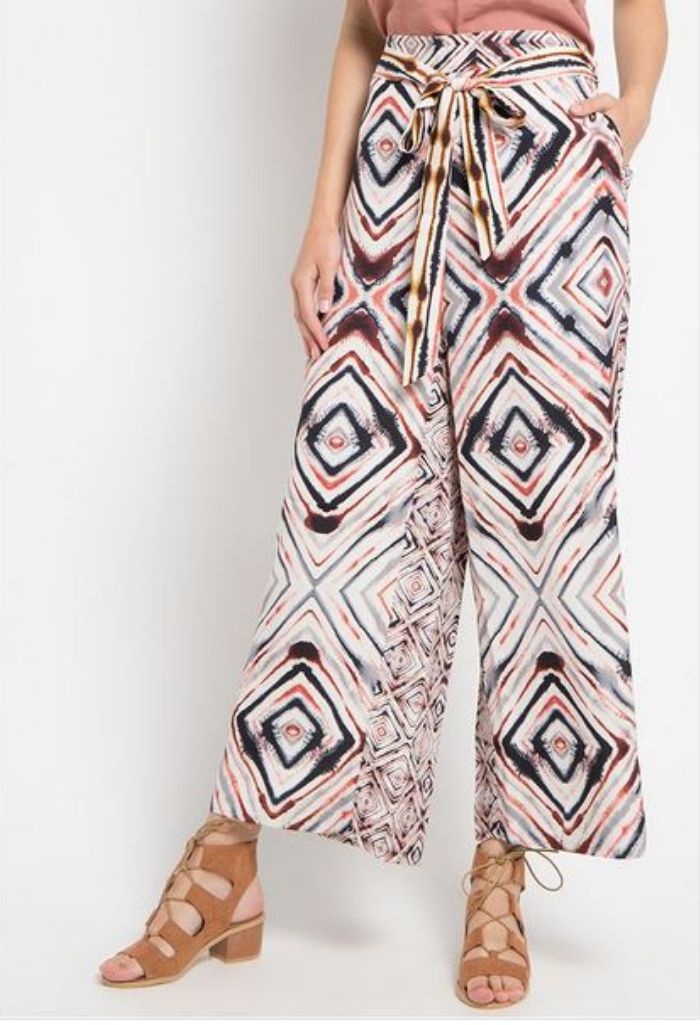 Seperti dengan memilih celana kulot koleksi Pulau Cerita yang dijual secara online di Zalora dengan harga Rp 319 ribu.