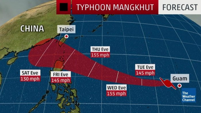 Topan Mangkhut yang sudah menyapu Kepulauan Mariana Utara saat ini bergerak menuju Pasifik dengan angin berkecepatan 255 kilometer perjam.