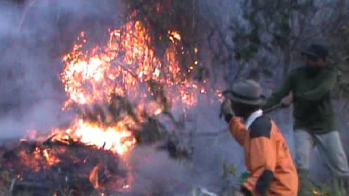 Medan yang sulit dijangkau, keterbatasan air dan alat, serta angin kencang menjadi kendala para petugas yang berusaha memadamkan api di Gunung Lawu.